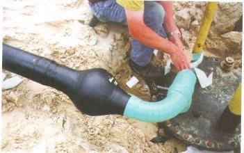 2、粘彈體膠帶應保持輕柔的張力,邊纏繞邊按壓膠帶搭接部位,保證搭接部位平整、密封良好。