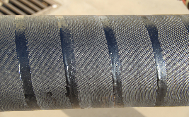 e、涂膠和鋪纏帶:把配比攪拌好的定型膠用干凈毛刷或滾刷均勻足量涂敷一遍,確保無漏涂后即可鋪纏基帶,按20~25mm寬度搭接,延長搭接100~150mm,疊層/搭接處涂刷定型膠,附平拉緊,不得出現鼓包。