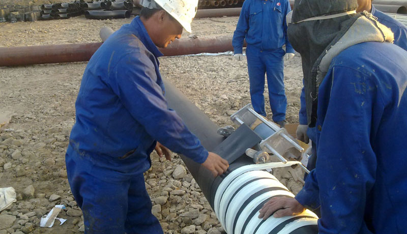 20世紀70年代以前,管道補口主要采用瀝青基防腐材料,補口形式包括:現場熱澆涂石油瀝青(或煤焦油瓷漆)加纏玻璃布,薄涂多層的瀝青熱澆涂補口(國內應用較廣,國外很早被淘汰);現場進行加熱操作,同時纏繞浸涂過石油瀝青(或煤焦油瓷漆)的玻璃纖維氈纏帶的熱澆瀝青纏帶補口(國外有一定應用,國內無規?;瘧茫滑F場直接涂裝環氧煤瀝青漆,加纏玻璃布,薄涂多層的冷涂環氧煤瀝青補口等。此類材料由于在生產及使用過程中對環境缺乏友好性,近年來已基本退出了管道補口領域。