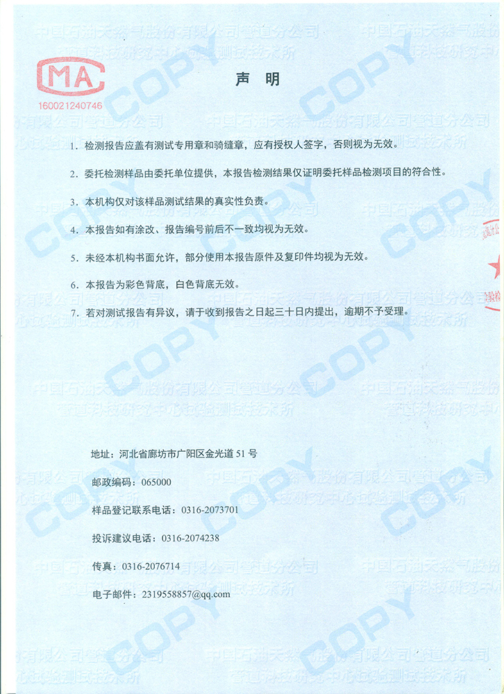覆蓋率對PE23℃ 99%   對PE70℃ 99%   對PE-45℃ 98%   對FBE23℃ 99%   對FBE70℃ 99%   對FBE-45℃ 98%    對鋼23℃ 99%    對鋼70℃ 99%   對鋼-45℃ 98%