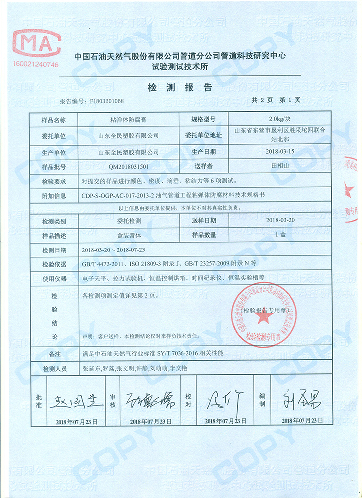 • 粘彈體防腐膏檢測報告2